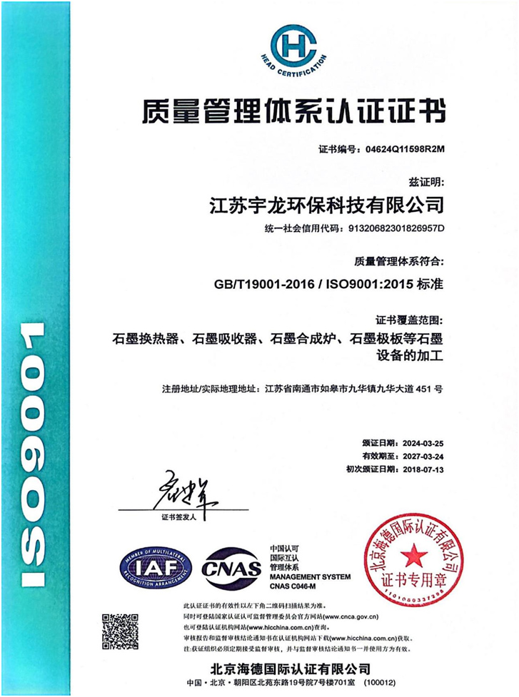 宇龙ISO9001管理体系证书